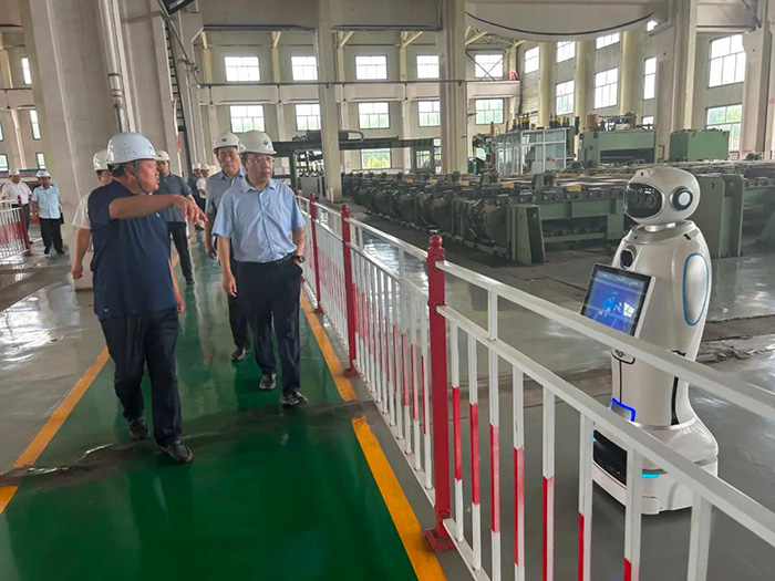 王素文廳長(zhǎng)一行參觀了滄海核裝直縫埋弧焊管生產(chǎn)線,詳細(xì)了解了滄海核裝的發(fā)展歷程、產(chǎn)能規(guī)模和生產(chǎn)經(jīng)營(yíng)情況,實(shí)地觀摩了5G智能工廠數(shù)字化車間的全流程調(diào)度運(yùn)行,對(duì)滄海核裝智能化的生產(chǎn)現(xiàn)場(chǎng)和精細(xì)化的管理模式給予了高度評(píng)價(jià)。